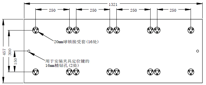 可容納的夾具板數量 接受套中心距 接受套內徑 配套球鎖軸