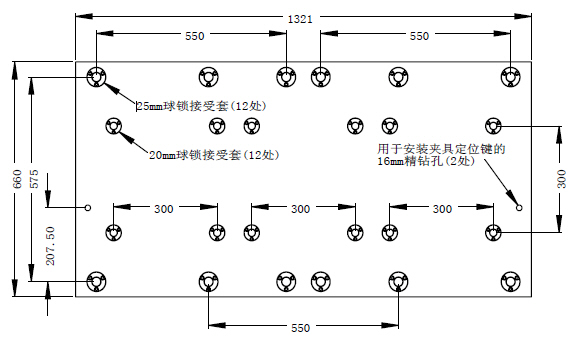 可容納的夾具板數量 接受套中心距 接受套內徑 配套球鎖軸