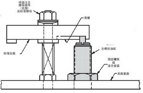 以螺紋油缸替代階梯墊塊或其他類似機械裝置,手動壓緊機構可方便地改為效率更高的液壓壓緊機構。