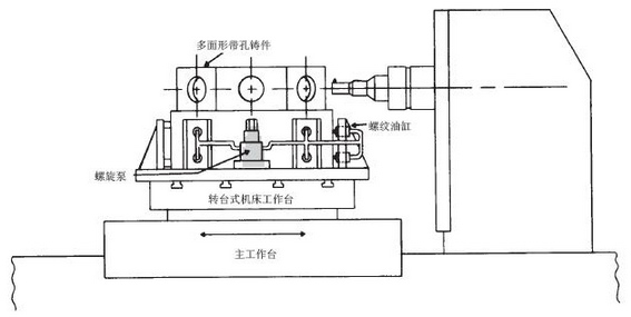 手動泵在銑磨加工上的典型應用. 壓緊裝置為全配安裝, 用于加工大型多面鑄件的旋轉式分度夾具上. |
