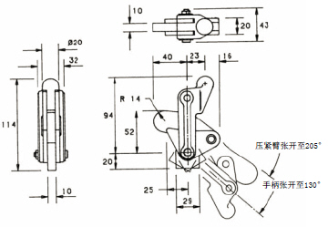 型號 HDV1500/SW 壓緊臂: 粗鼻端(壓緊端), 可焊接延伸 基座: 直向 理論壓緊力: 700 公斤 重量: 0.71 公斤