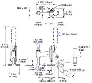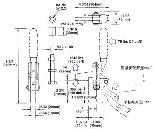 型號 HDV1500/SS 壓緊臂: 實心壓緊臂 基座: 直向 理論壓緊力: 700 公斤 重量: 1.04 公斤 完整配置: 螺桿固定架、固定螺絲、螺母