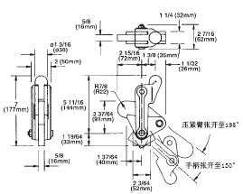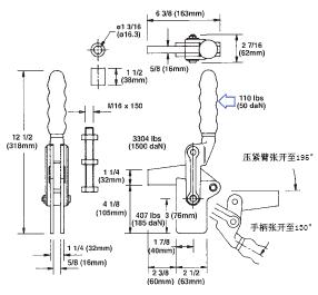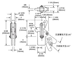 型號(hào) HDV5200/SW 壓緊臂: 粗鼻端(壓緊端), 可焊接延伸 基座: 直向 理論壓緊力: 2400 公斤 重量: 3.20 公斤