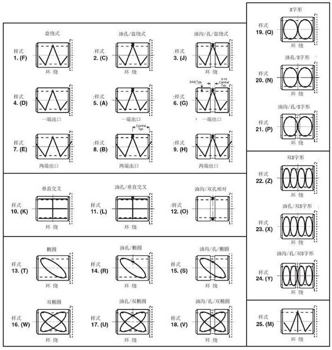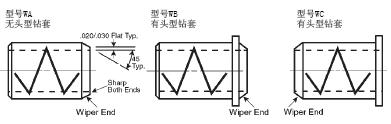 油溝: 1/16" 寬 x 1/32" 深 油孔: 1/4" 直徑. (如果內外徑和/或長度小于等于1英寸, 油孔則是1/8英寸, 外徑油溝將是3/16寬X1/32深). 訂購需指出: Acme/ANSI標識 或 內外徑及長度, 指出油溝類型. 例: 18型油溝,1"X1-3/8x3/4 型號 P 和 WA 型擋刷.