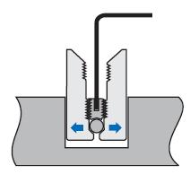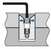 移開頂蓋螺絲,將膨脹銷插入公件一的定位孔,用六角扳手旋緊膨脹銷底端的螺絲使其脹緊固定