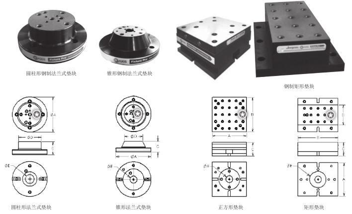 五軸墊塊 法蘭式,矩形和正方形(鋼制或鋁制)