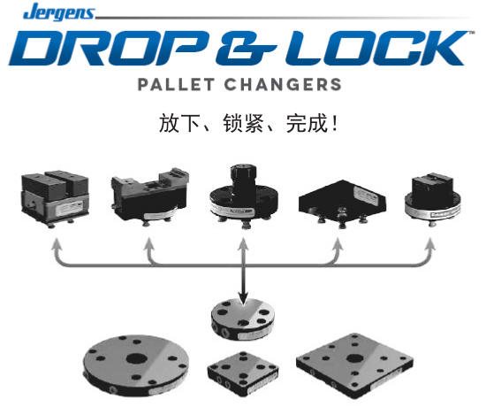 Drop & LockTM 快換系統(tǒng)實(shí)現(xiàn)了轉(zhuǎn)換板和專用夾緊組件間更快速、更精確的轉(zhuǎn)