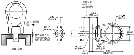 *快鎖吊環的載荷能力是基于熱處理工具鋼鋼板加上帶肩襯套作為測試對象而得到的結果.