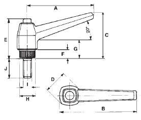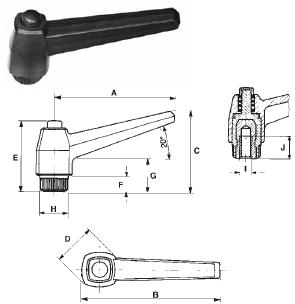 當操作空間角度有限時, 該產品可作調壓緊或緊固控制. 欲在鎖緊操作過程中調節, 臺起杠桿, 以使齒從鎖緊部件脫離, 并改變杠桿位置,然后復位彈簧自動將齒合上.