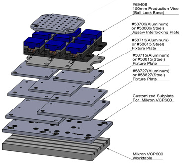 主要應(yīng)用于精密數(shù)控機(jī)床(VMC/HMC)上 。利用該系統(tǒng),成套夾具的裝、卸時間可縮短至1分鐘,回復(fù)定位精度確保在+/-0.013mm以內(nèi)。 |